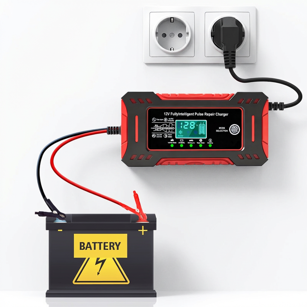 Autobatterie-Ladegerät mit 12-Volt-Technik und automatischer Steuerung – ideal für Pkw, Motorräder, Roller, Generatoren, Quads, Boote oder Rasenmäher-Traktoren ab 18 Ah. Es lädt gängige 12-V-Bleiakkus wie Nass-, AGM- und Gel-Batterien und ist geeignet für HARO Generator Starterbatterien. Ladeprogramme Das Gerät bietet einen schonenden Standard-Lademodus sowie einen speziellen Reparaturmodus zur Regeneration schwacher oder lange ungenutzter Batterien. Die Elektronik überwacht Spannung und Stromstärke automatisch und schützt vor Überladung, Kurzschluss sowie Verpolung. Ein klares Display zeigt Spannung, Ladefortschritt und Modus an. Praktische Vorteile Kompaktes Design mit Tragegriff für einfache Handhabung und Transport. Geeignet für HARO Generator Starterbatterien (18 – 110 Ah, Kaltstart ab 680 A/EN) dank universeller Kompatibilität bis 200 Ah. Erhöht die Lebensdauer Ihrer Batterien bei Standzeiten.