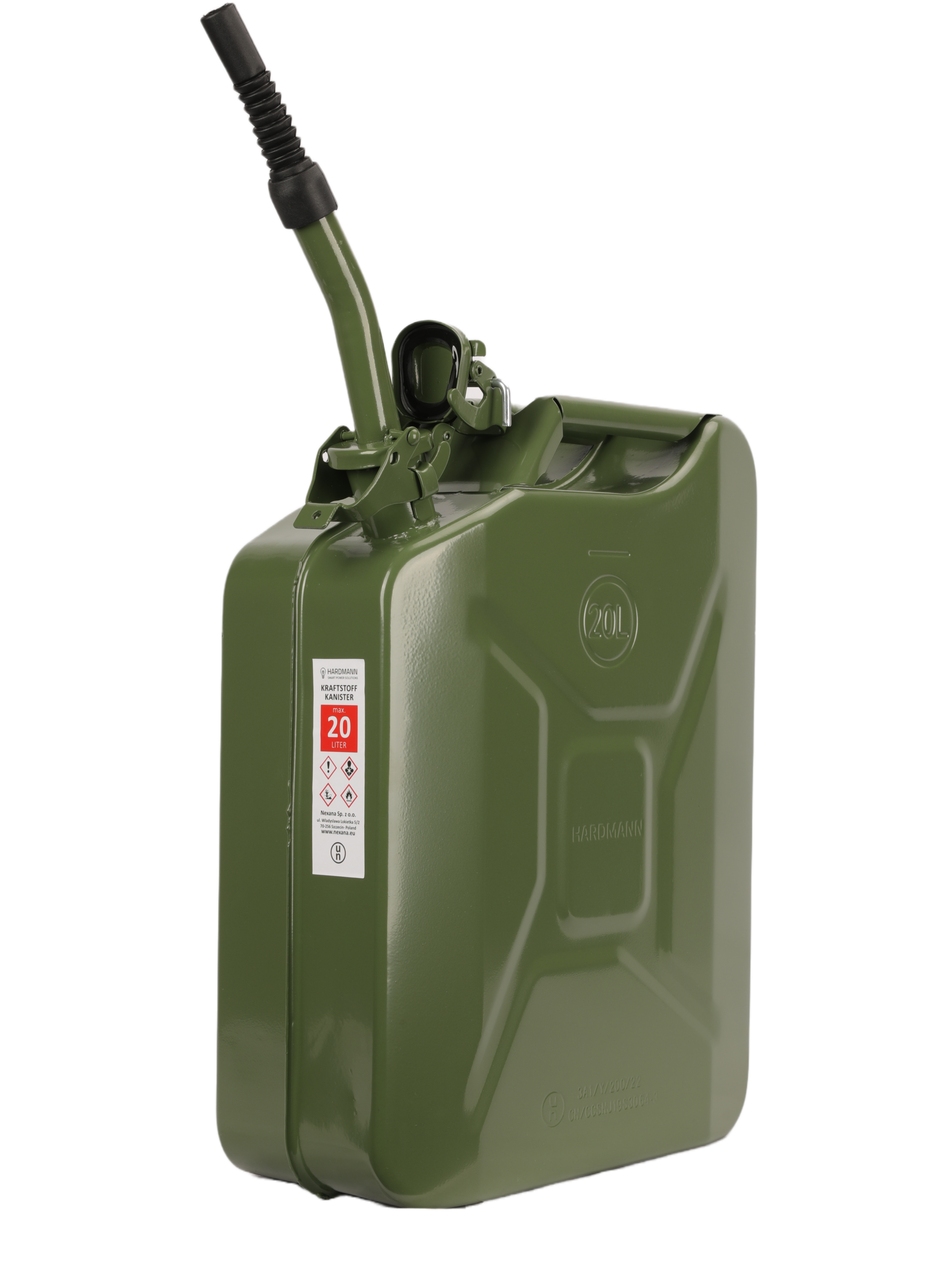 2) 4 × 20-Liter Kraftstoffkanister (Olivgrün, UN-zertifiziert) Zum Notstromaggregat für den Privathaushalt gehört zwingend eine sichere Kraftstoffreserve. Die vier mitgelieferten 20-Liter-Kanister aus pulverbeschichtetem Stahl (0,8 mm Wandstärke) mit kraftstoffbeständiger Innenversiegelung schützen zuverlässig vor Rostbildung. Die UN-Zertifizierung nach europäischen Normen garantiert höchste Transportsicherheit. Der Sicherheitsverschluss mit Gummidichtung sowie der Metall-Ausgießer mit flexibler Plastiktülle machen das Befüllen des Generators sauber und unkompliziert. Mit insgesamt 80 Litern Kraftstoff erreichen Sie eine Laufzeit von über 100 Stunden – das entspricht mehr als 4 Tagen durchgehender Notstromversorgung für Ihr Zuhause. 💡 Diesel oder Heizöl – was darf ich tanken? Der HARDMANN 5000-OT kann wahlweise mit Diesel (EN 590) oder Heizöl EL (nach DIN 51 603-1) betrieben werden. Der Betrieb mit steuerbegünstigtem Heizöl ist für stationäre Notstromaggregate nach § 3 Abs. 1 EnergieStG ausdrücklich erlaubt – da der Generator ausschließlich der Stromerzeugung dient und während des Betriebs an seinem Standort verbleibt. Wer ohnehin eine Ölheizung zu Hause hat, kann also denselben Vorrat für Heizung und Generator nutzen – ein erheblicher praktischer Vorteil im Blackout-Fall.